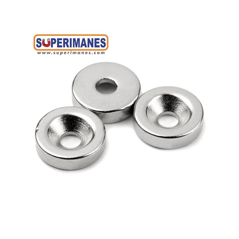 Los imanes de neodimio son frágiles y los imanes con taladros son aún más delicados, pudiendose romper o fragmentarse si reciben golpes continuados. Por ello, recomendamos hundirlos o embutirlos ligeramente para protegerlos. (p. ej., hundir o embutir el imán dentro de la madera en la fabricación de muebles).