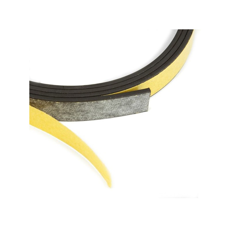 Las cintas magnéticas autoadhesiva sirve para fijar objetos no magnéticos en superficies metálicas. Esta cinta magnética tiene 10 mm de anchura y está disponible en grosor de 2 mm que le da un mayor agarre, se vende por metros sueltos o por rollos de diferentes medidas. Tienen magnetización isotrópica. Tira adhesiva imantada. Estas tiras magnéticas pueden ser cortadas con tijeras o cúter fácilmente. Aptos para realizar manualidades con ellos, muy apropiado para hacer figuras magnéticas. Usados por centros educativos, oficinas y hogares.