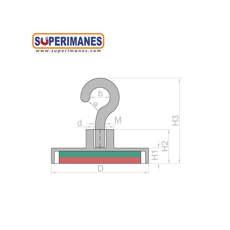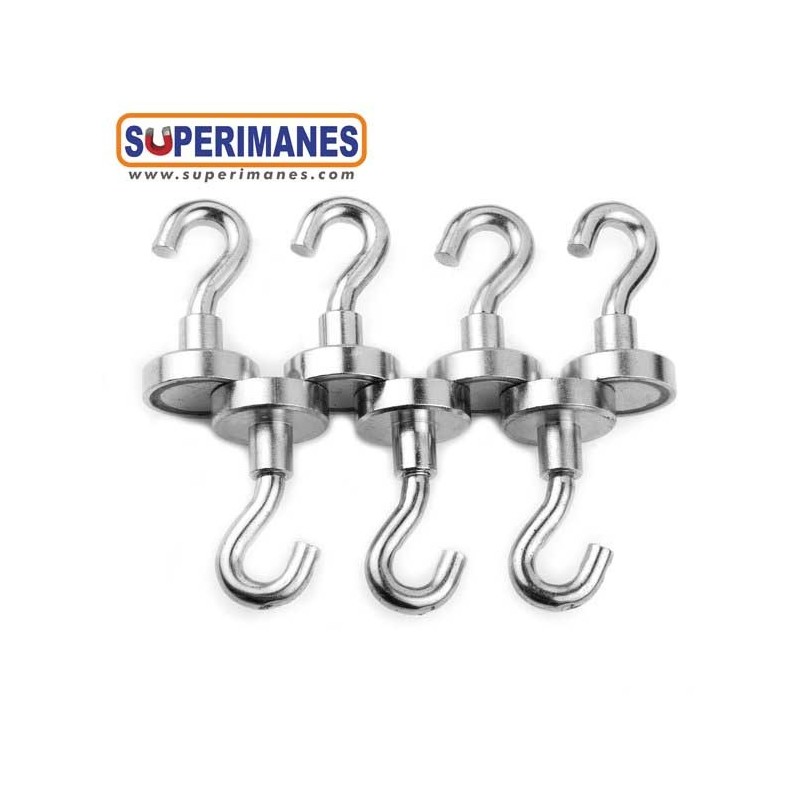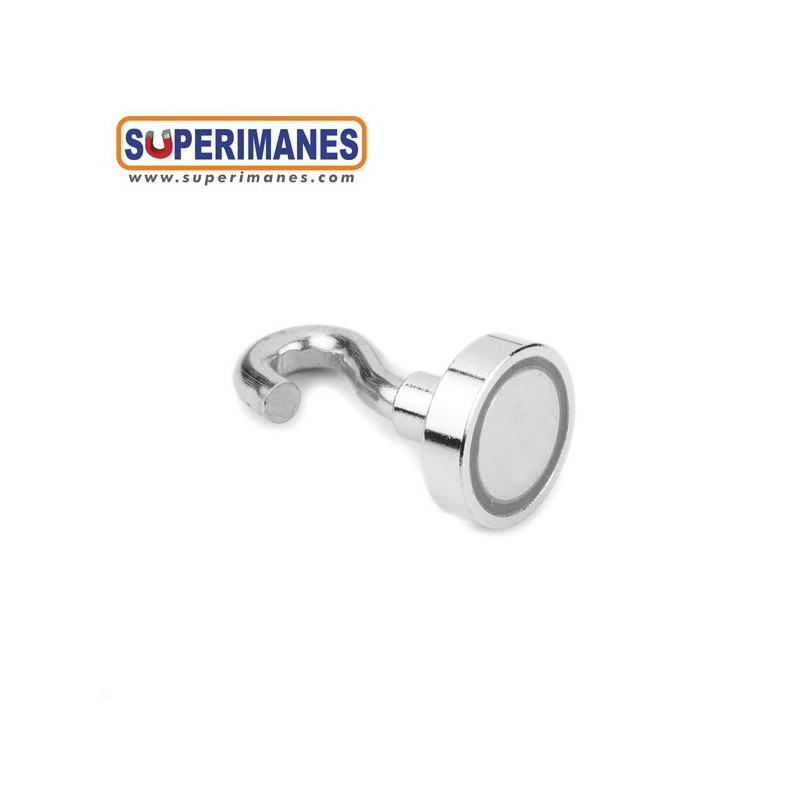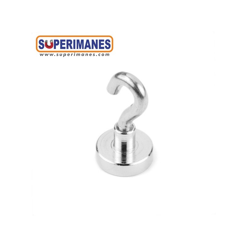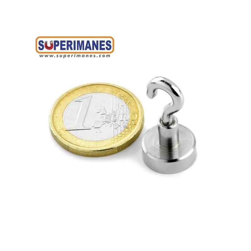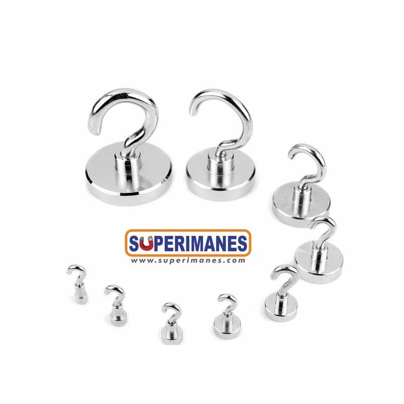 Particularidad: Estos imanes con gancho son ideales para colgar objetos. El gancho se puede desenroscar. Con estos potentes ganchos magnéticos, se puede colgar cómodamente material de oficina, utensilios de cocina, prendas de ropa, etc., en superficies ferromagnéticas. Los ganchos magnéticos despliegan su fuerza de sujeción máxima en la parte inferior de vigas de acero gruesas, en las que se les puede aplicar una carga hacia abajo en vertical. Sin embargo, si se colocan en una pared, la carga que se les puede aplicar es considerablemente menor.