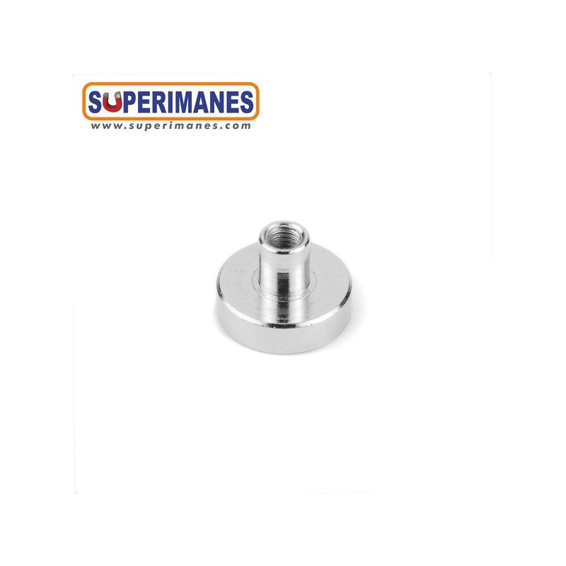 Principio: Los potentes imanes de neodimio van introducidos en un recipiente de acero. El recipiente de acero aumenta la fuerza de sujeción del imán cuando este está en contacto directo con una superficie gruesa de hierro. Si no hay contacto directo con la pieza contraria o si la chapa de hierro es delgada, tosca o está pintada, la carga que se le puede aplicar al imán será mucho menor.