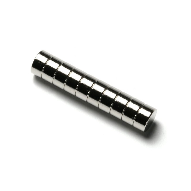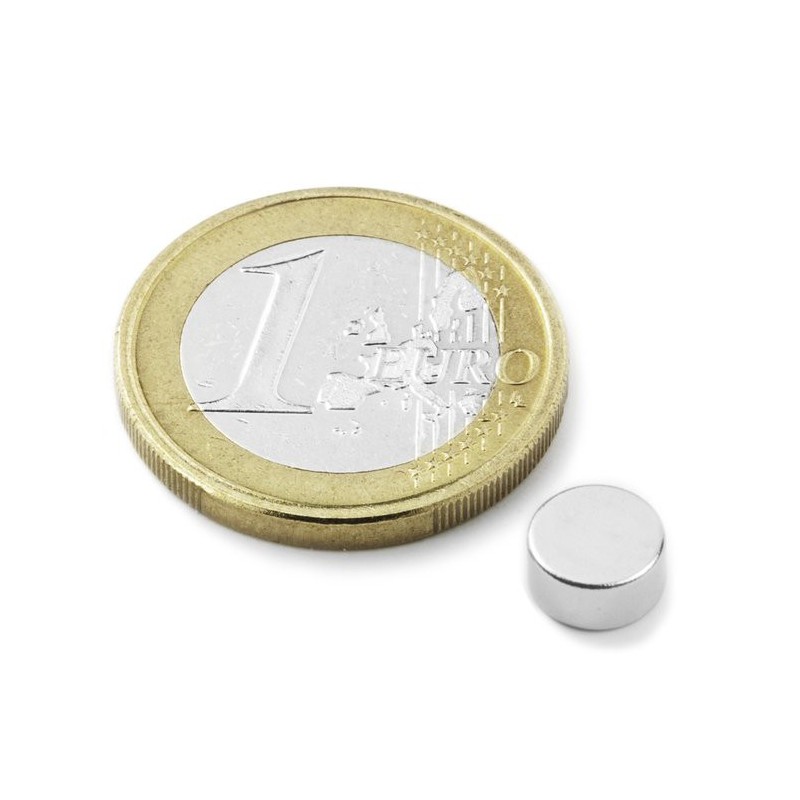 Este pequeño imán de neodimio en forma de disco redondo tiene un diámetro de 6 mm y altura 3 mm. Disco magnético con fuerza de sujeción de 990 gramos aproximadamente. Magnetizado en N45 axial. Con revestimiento de níquel. Temperatura máxima de servicio de 80º C. La pieza tiene un peso de 0,64 gramos.